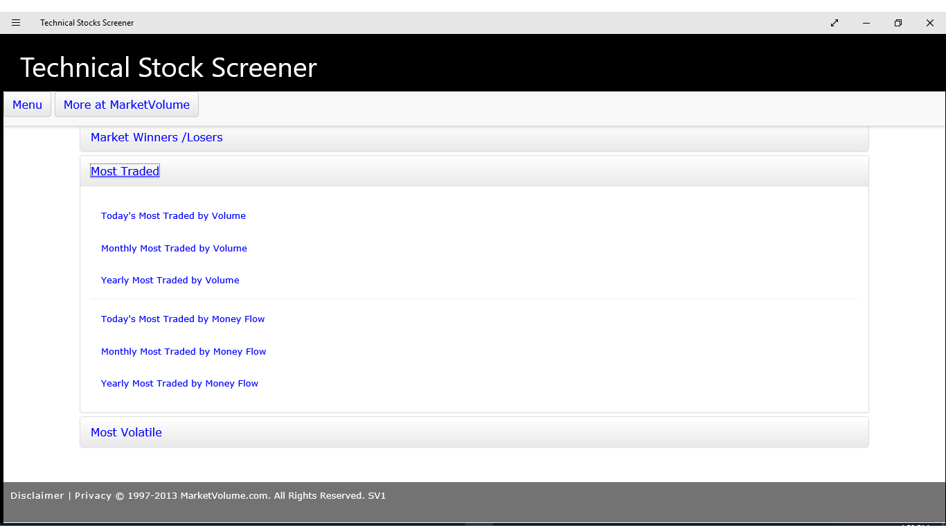 Easily screen stocks using as many or as few options as you wish including price, volume, exchange, industry and performance. The stock screener saves you time, helps you locate the best opportunities, and find alpha. Implement your proprietary approach to stock picking with an intuitive, powerful, and fully customizable tool. Below is a list of built in stock screeners for both the iphone and android version. The intraday stock screener is designed to screen for stocks using as many or as few parameters as you wish to define.